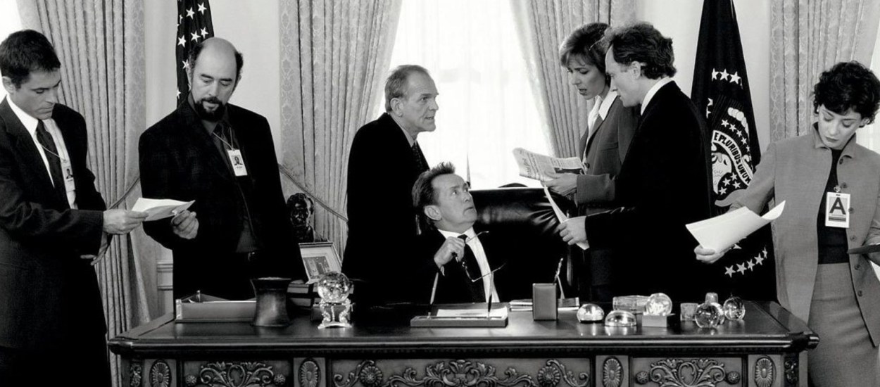 With little more than desks, doorways, and lighting, the White House was recreated and peopled by Josh and his harried assistant Donna, Sam deliberating over an antique chessboard, while President Bartlet deliberated moving aircraft carriers in response to military posturing from China. Press Secretary C.J. bought pizza and speech writer Toby cautiously mended metaphorical fences and, at the end of the day, things were fixed.